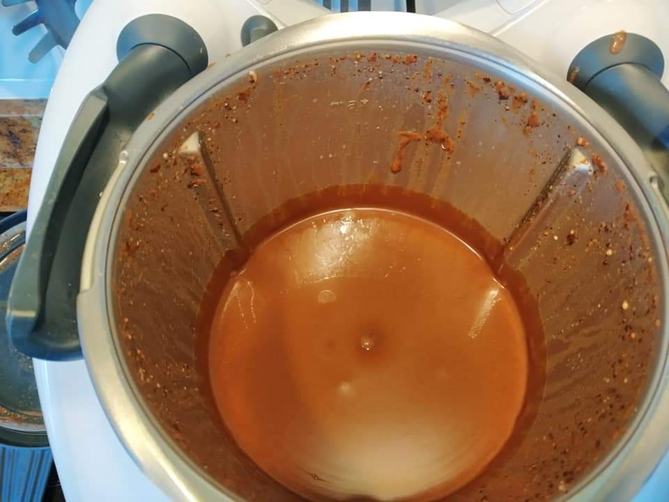 .Añadir los 3 tipos de chocolate y triturar 20 segundos a velocidad 9.
