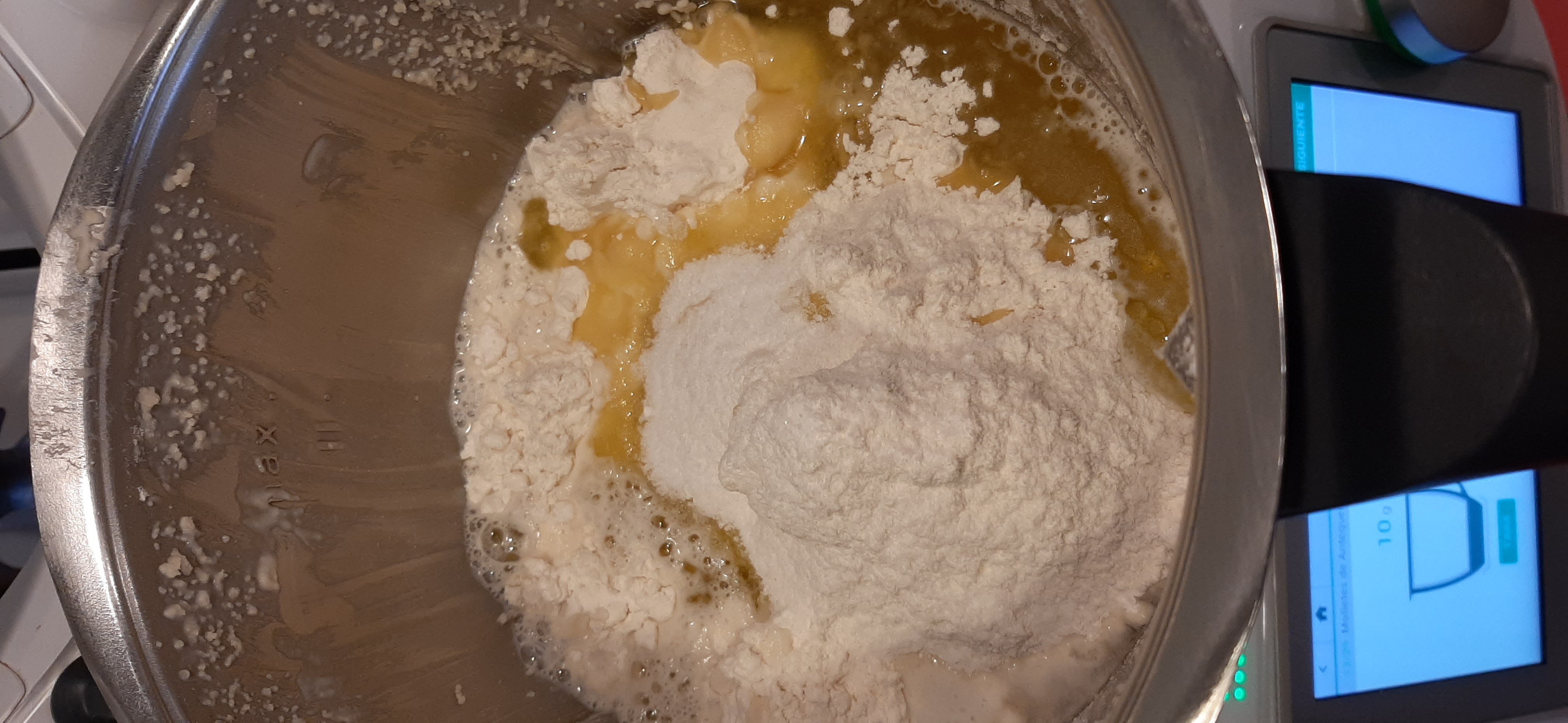 Añade la nata y el aceite de girasol, mezcla 3 minutos en velocidad 2.