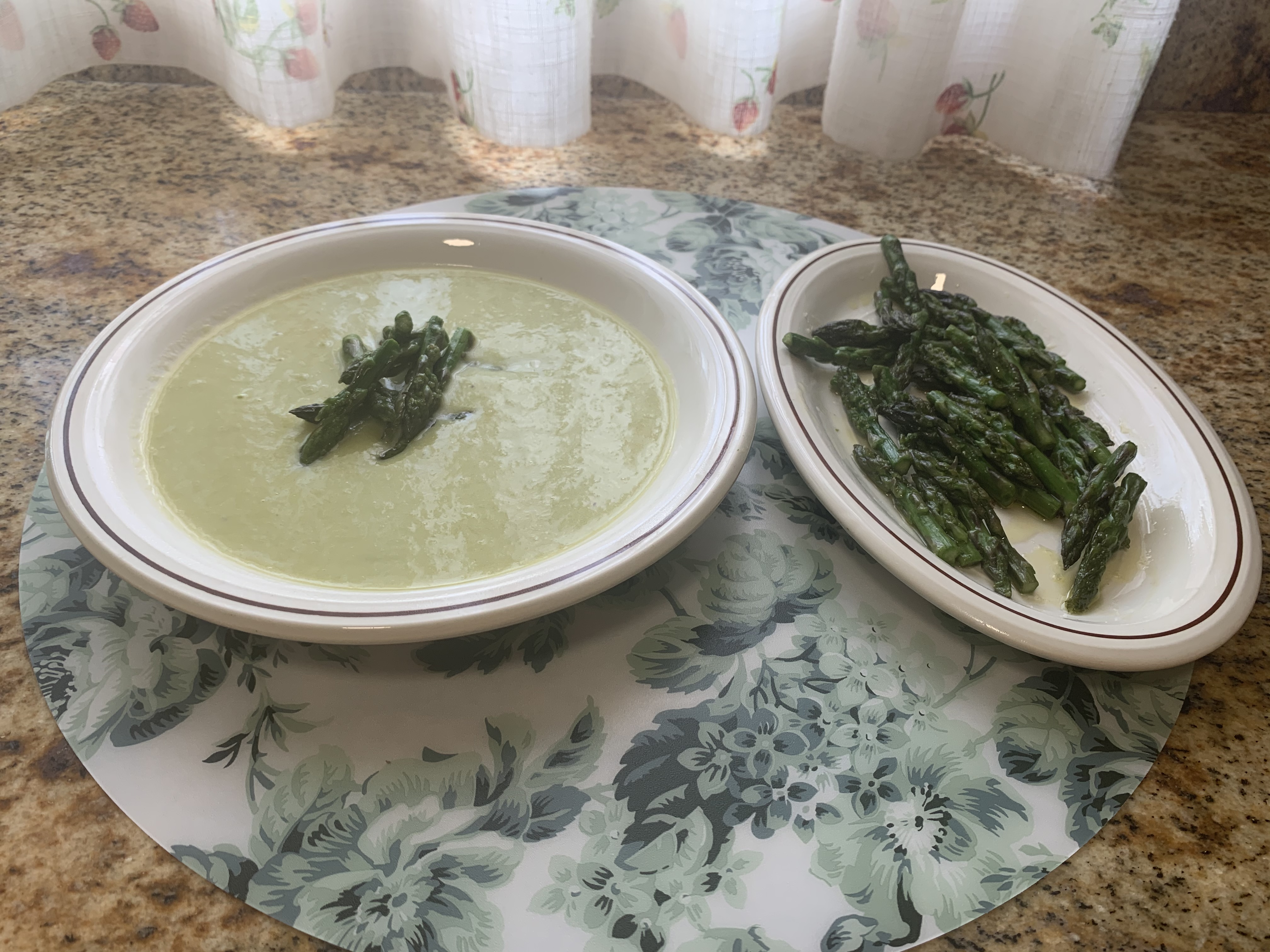 9. Servimos la crema caliente y decoramos con las puntas de los espárragos reservadas