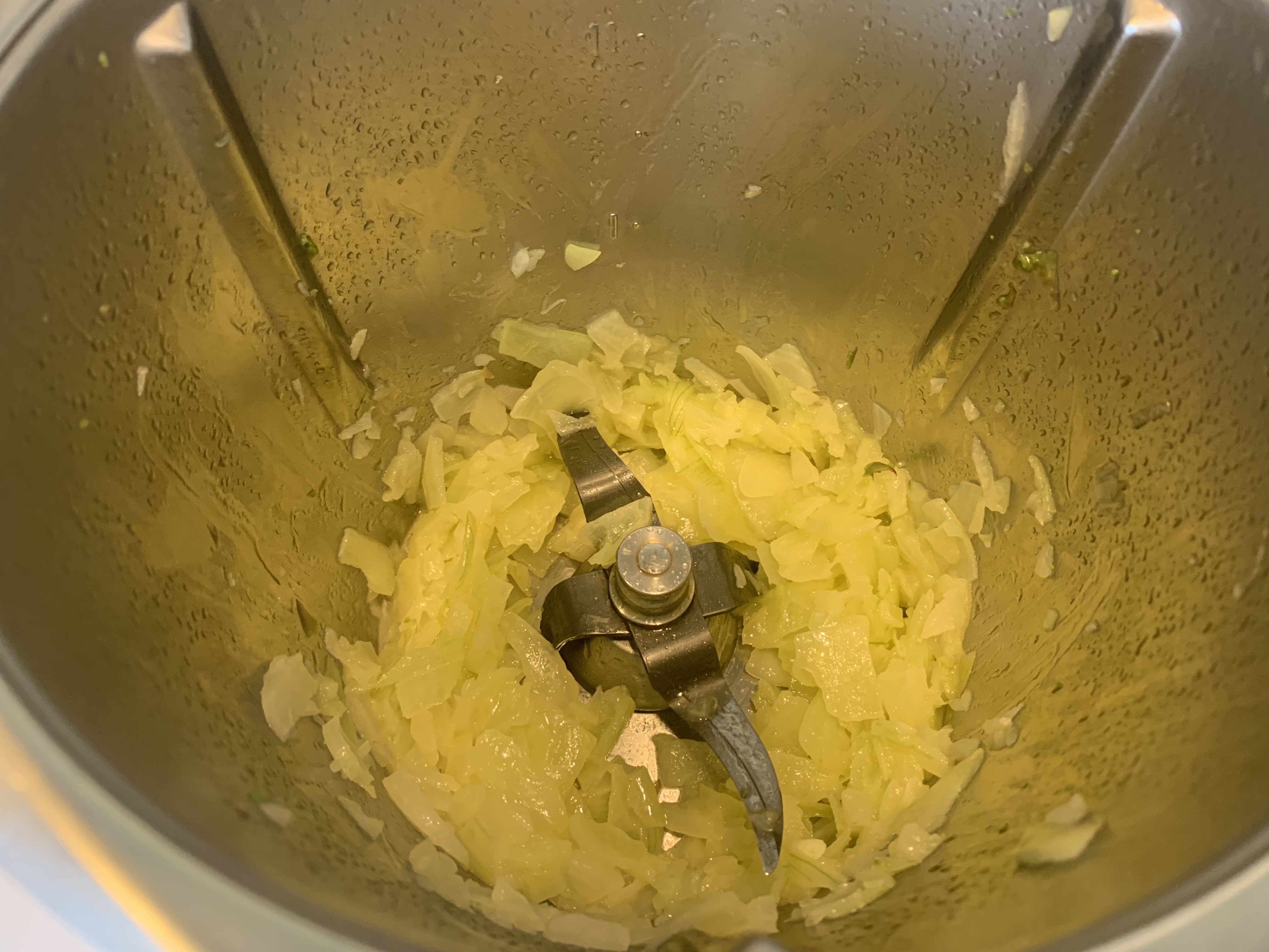 4. Incorporamos la cebolla al vaso y troceamos 4 seg/ vel 4 ,a continuación sofreímos 4 min/T 120º /vel 1.
